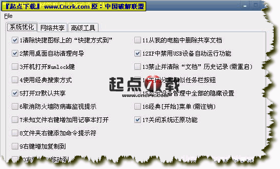 另个还带有几十项系统优化及限制功能,适合网吧即网管系统优化!