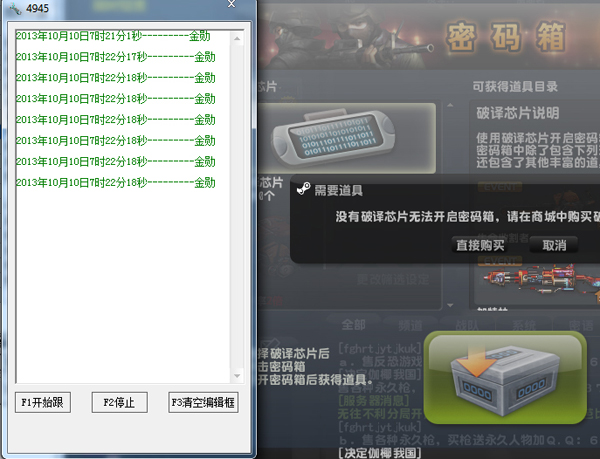 在csol中,开启密码箱需要用到破译芯片,这是非常珍贵的一个道具,但是手动去开启,获得的奖励一般不会太好,这里提供CSOL自动跟金抽奖器使用,帮助你轻松抽到大奖,此csol抽奖辅助是易语言制作,请放心使用。