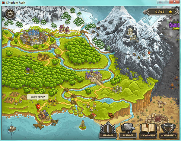 王国保卫战2:前线 Kingdom Rush Frontiers延续了1代的涂鸦式画风,不管是选关还是游戏画面都与1代非常相似,只不过2代在画面细节的勾勒上显得更为细致与饱满,立体感更强。在场景切换时还增添了色彩感鲜明的漫画插图,让人眼前一亮。而音乐方面,不知道是不是开发商出于让玩家们更专注于游戏的原因,取消了每关的背景乐,只保留了的敌人的惨叫、士兵的口号等我们很熟悉的音效,而选关画面的背景乐与1代相比则少了一分激昂多了些许婉转与悠扬。