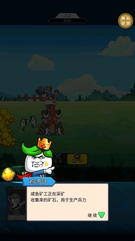 1开采获取的矿石资源,可用于兵力的生产制造,从而扩充自身麾下的表情包士兵数量。