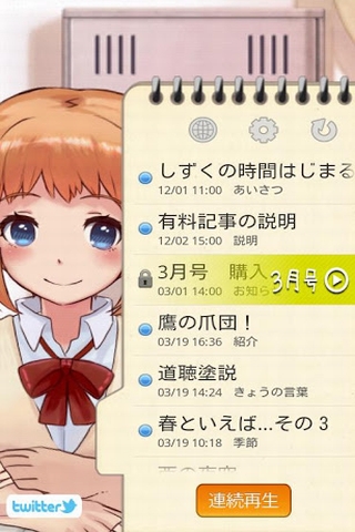 雫的日常安卓版内置了独特的声音推送和人机互动机制,点击软件右下角凸出的书签,会弹出可播放的音声素材列表,点击任意话题后软件会自动播放.更重要的是,这些话题基本每天都有更新.所以不怕软件会被玩腻.而大多数话题还附带有类似GALGAME的文字选项,会在所选话题播放完毕后出现,选择不同的选项,Shizuku会反应给你不一样的回馈,当然了.是附带语音的回馈。一些需要注意的问题:请不要关闭软件的网络连接权限,不然你就只能听到软件自带的几句声音了.如果你打开软件后发现话题列表是空的,请点击话题页上方的刷新按钮,对了,使用软件时请保持高速网络,如3/4G或WIFI网络.几十秒后(或许更久,耐心..耐心..)列表会被刷新,你就可以看到话题了.点击想听的话题后软件会自动开始下载声音数据,每段声音平均估约3M左右.下载完毕后Shizuku就会自己开始说话了.至于一些带锁的话题,是需要Google Play付费的,不过开发商很良心,绝大多数话题都是免费的.并且每日更新。