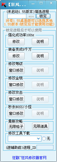 本辅助需配合1.55桌面版使用,也可以选择其他1.55版本,锁定进程后才能够使用功能(就是启动游戏)。