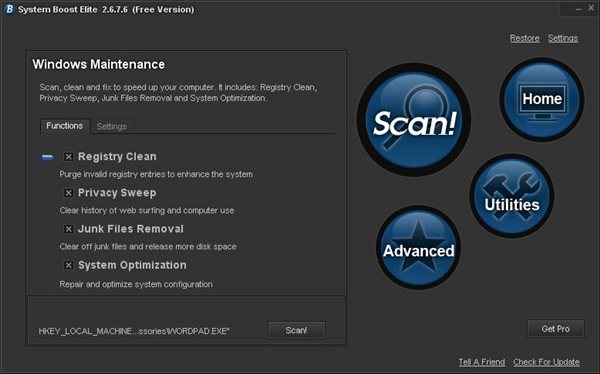 这就是为什么我们发现我们的全新的个人电脑一样,在开始执行速度很快,但随着时间运行越来越慢。System Boost Elite采用最先进的技术来诊断您的硬盘驱动器,并给予在几秒钟内最有效的治疗。它也做了保护你的IE被抹去的历史,最近的文档的历史和客户信息,定期您的隐私出色。它标志着什么是它的简单和方便。与简单的步骤,遵循,用户可以点击数内完成清理工作,所有的程序都是按顺序进行:注册表清理,隐私扫描,垃圾文件清除和系统优化。每当你想要的而你可以阻止它。