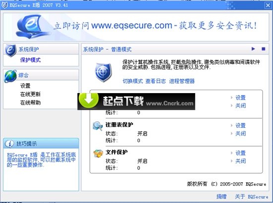 EQSecure E盾 2008 V4.0 Beta3 简体中文绿色免费版 EQSecure for System 是系统安全防火墙,可以保护计算机操作系统,拦截危险操作,避免类似病毒和间谍软件的安全威胁.包括进程,注册表以及文件.