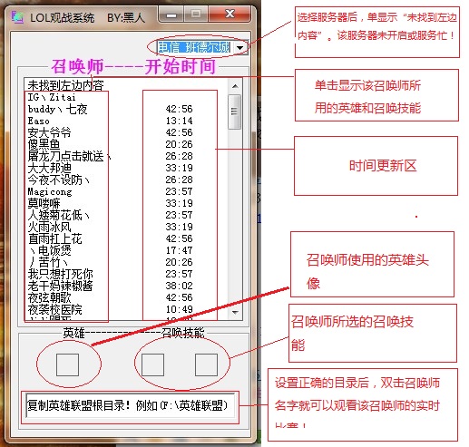 黑人lol观战系统是用网页填表代码读取某个网站上的观战数据制作而成的,黑人lol观战系统是一款简单易用的英雄联盟观战软件。欢迎下载使用!