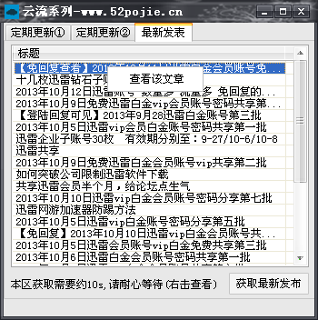 云流迅雷实时更新VIP获取器 1.0 绿色版 【概括介绍】