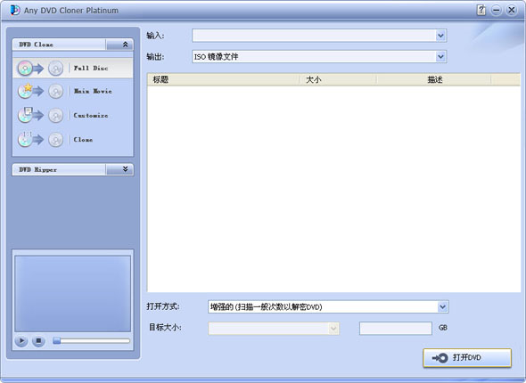 作为一个DVD复制机,Any DVD Cloner Platinum可以以1:1的比例超高的DVD拷贝速度对拷DVD影片和复制DVD到硬盘中,以最好的质量压缩DVD9为DVD5,以DVD文件夹形式或ISO映像文件形式复制DVD影碟到硬盘。作为一款DVD提取器,Any DVD Cloner Platinum可以抓取DVD到M4V,MP4,AVI, OGM 和 MKV .也可抓取DVD为iPod,iPhone,PS3游戏机,PSP和Xbox360支持的播放格式,以便您可以随时随地观看您喜爱的DVD电影!
