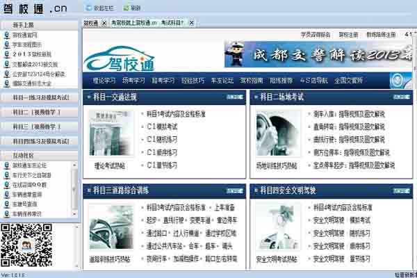 “驾校通”可随时为学员提供2013新规最新的学车动态、各驾校的价格、服务,提供网上模拟考试,为学员提供全方面的服务,让学员能以最优惠的价格选择真正适合自己的驾校。学驾校就用驾校通 拿驾照更轻松;通过优质、方便、快捷、专业的服务来实现真正的无忧学驾校,本网还提供学车方面的各种知识,具体包括“科目1理论知识学习及模拟考试”、“科目2场地考试图文解说及视频指导”、“科目3电子路考图文解说及视频指导”、“科目4安全文明驾驶题库练习及模拟考试”、“全国各地车管所”等栏目,是学员学车的第一站。
