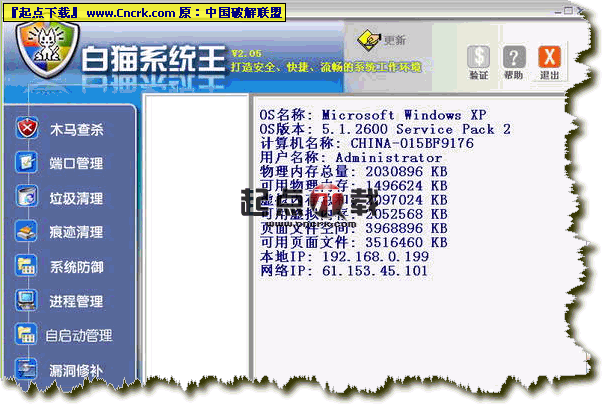 白猫系统王是一款为所有计算机用户设计的功能强大的装机必备软件,无需注册即可享用工具箱和部分管理功能;软件既精巧又不 占系统资源,称得上是名副其实的环保型软件;一键式简单化操作更让所有计算机用户都得心应手。采用新一代的病毒查杀技术,是所有杀毒工具中唯一实现确保百分之百杀除所有病毒,准确无误、无一 漏网。白猫系统王真正实现了安全杀毒,安全防护,安全清理的独特魅力,从而确保计算机运行安全、流畅。其主要功能: