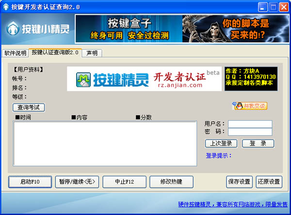 按键开发者认证查询是使用按键精灵制作的很简单的考试查询脚本,按键精灵开发者认证使用过程如遇360拦截,请点击允许通过即可使用。