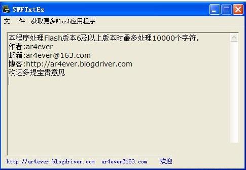 swf文字抓取工具,本程序处理Flash版本6及以上版本时最多处理10000个字符。