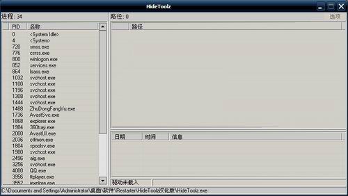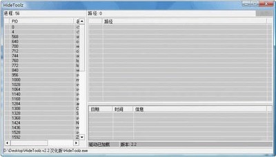 HideToolz是一款可以帮助用户隐藏进程的工具,再配合隐藏窗口等工具得以完美隐藏,就跟没运行一样。该隐藏进程工具的强大之处在于隐藏的不仅仅是进程列表那么简单,即使其它程序也未必能检测到你所隐藏的进程。HideToolz支持隐藏还原,还可以在右边添加路径,能够隐藏指定目录内的所有进程。进程隐藏工具,驱动实现隐藏进程、窗口,保护进程的工具,目的是保护Crack工具不被检测。不支持64位系统。