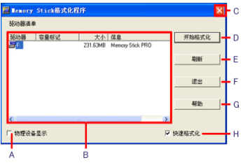 选择要格式化的设备时应非常谨慎。如果从设备列表中选择了错误的设备,将会导致Memory Stick格式化程序对 "Memory Stick" 之外的驱动器进行格式化。