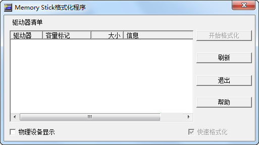 如果要在 Memory Stick 格式化程序屏幕上显示驱动器清单,则不要勾选此框。