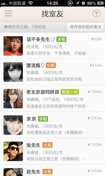 和你附近的同事,同学,妹子,女神,土豪……一起合租!