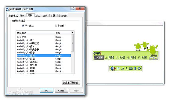 新增个性换肤功能,并精心设计制作20余款Google徽标和Android风格的个性皮肤。