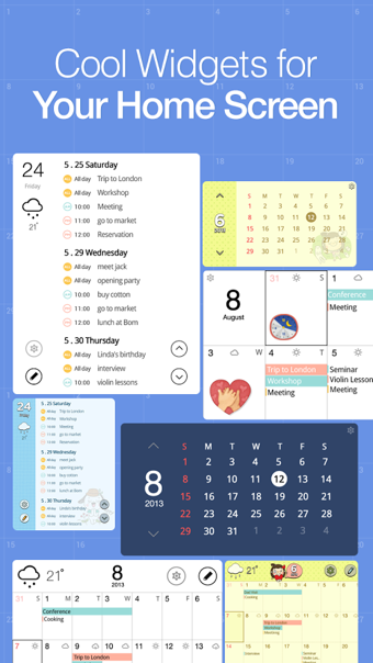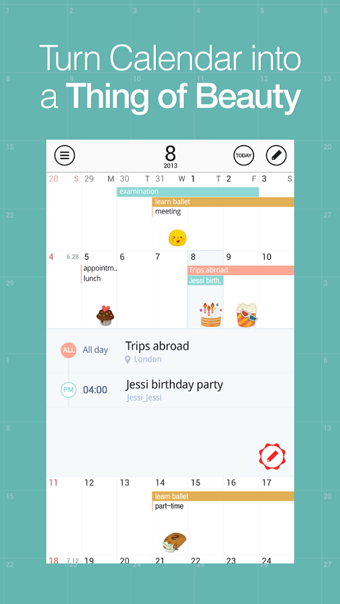 优美的封面设计!清新的查看界面!快捷便利的功能! Sol日历安卓版为您提供最佳日历体验!Sol日历还可以与谷歌日历、雅虎日历等其他日历应用联动使用。 First things first, your SolCalendar!