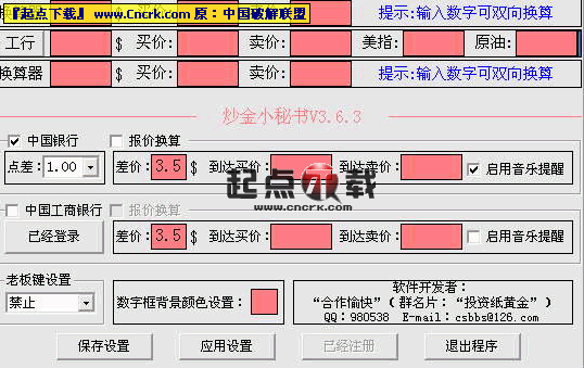 炒金小秘书主要功能:(抓住纸黄金投资赚钱机会的绝好助手!界面简洁、功能强大、非常实用!)