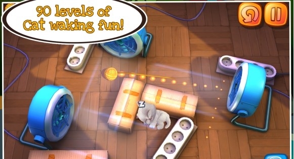 游戏的主界面有一座暖暖的火炉,营造出温暖感,这让游戏在冬天玩再合适不过了。而家庭的场景使人产生一种身临其境的同时,给人一种安静的归属感。游戏画面中温暖的阳光斜斜的从外面照到屋子里来,温馨而又宁静。但遗憾的是画面的细节太少,物品摆放也比较生硬和简单,家的味道不算非常的浓。游戏中那个把小猫逗醒的角色一定很有自娱自乐的精神,因为在小猫和毛线球之间被放上了各种各样的障碍和机关,玩家要利用这些作用不同的机关很迂回的达成简单的目的。场景中蓝色的机关是可以通过点击来进行互动,而红色的机关则不能。机关包含着许多巧妙的心思,比如玩具小火车可以推动毛线球前进或者作为反弹的道具,电风扇能吹动毛线球的滚动,而拖鞋则是神奇的异次元通道等等。这些机关和障碍大多数都是日常的生活用品,让游戏的生活感很强,不过引力生成装置就显得非常的刻意和破坏气氛。
