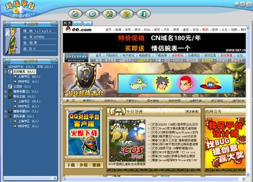 腾讯拥有3亿的庞大QQ用户群,最高一亿的在线用户,用户遍及国内各省市甚至全球各地。在如此庞大的用户基础之上,我们不断给用户提供更多的更精彩的互联网娱乐服务内容。QQ对战游戏平台正是我们为用户提供的一项新的互动娱乐服务内容,专门针对QQ用户群中的网络竞技游戏爱好者群体。借助QQ雄厚的用户寄出和腾讯公司强大的技术实力优势,QQ对战平台将会迅速发展完善,超越网络上的同类产品,成为网络玩家新的娱乐热点之一。