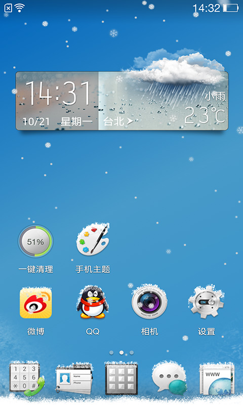 2、逼真的自由天气,雨、雪可以落在图标上