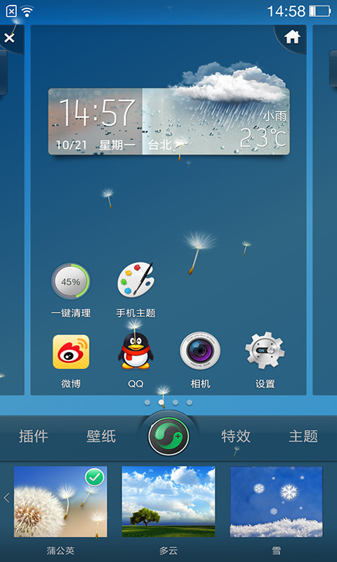 1、全新改版的界面,更青春活泼;更简约漂亮的时钟天气插件;