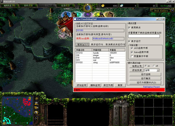 1.允许在JASS函数,NATIVE函数和任意全局变量上下断点,JASS脚本运行到该函数或变量时会自动暂停