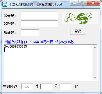 压缩包中有蓝钻、红钻、黄钻、粉钻的抢码器,大家有啥钻就用哪个吧,打开抢码器后登陆QQ,然后在底下设定领取时间就ok了,空白处会显示定时成功的。