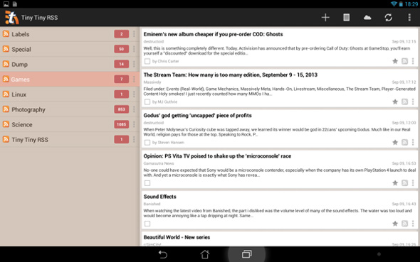 Gr还在时,基本上就没这些软件什么事情了,Tiny Tiny RSS安卓版是一个基于Web的RSS/Atom新闻聚合器,它的UI基于Ajax技术开发所以看起非常像一个桌面应用程序。