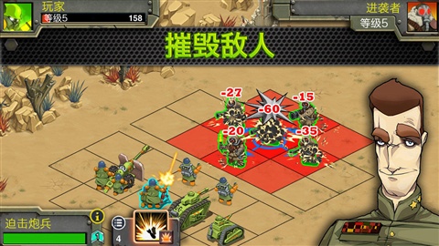 战场争锋安卓版是一款让人爱不释手的战斗策略游戏!快踏上这段史诗般的旅程吧!您将会体验到丰富有趣的游戏剧情,接触到性格各异但惹人喜爱的人物,您还能自由打造前哨基地,训练士兵、建造战车,并派遣他们上战场去铲除强大的恶徒与敌人!