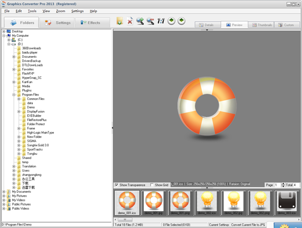 预览模式:IconCool免费图形转换器有4预览模式,包括详细信息,预览,缩略图“和“ 自定义“。您可以轻松地通过点击右上角的按钮切换模式。
