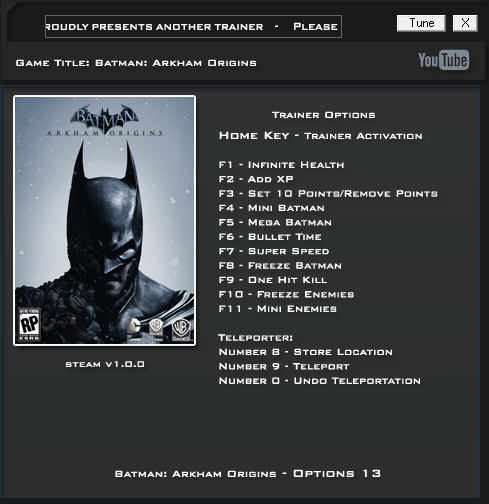 蝙蝠侠阿甘起源修改器是一款同名游戏的辅助修改工具,包含有多种强大功能,帮助玩家降低游戏难度。