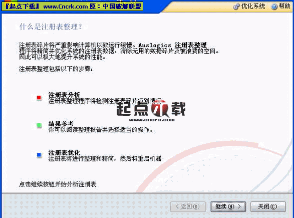 注册表清理工具我们都知道定期整理磁盘碎片的意义,听说过注册表当磁盘来整理吗?AusLogics公司就提供了这样一个软件,把注册表分析出碎片,然后进行整理,当然,也提供整理报告。