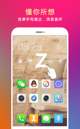 问果桌面是一款手机桌面应用,用户无需刷机即可体验问果桌面、问果手写搜索系统、语音搜索系统、应用智能分类、Smart Zone(智趣空间)、云端调用轻应用等问果桌面的核心功能。让用户畅享问果桌面所带来的极致爽快和便捷。【软件特点】