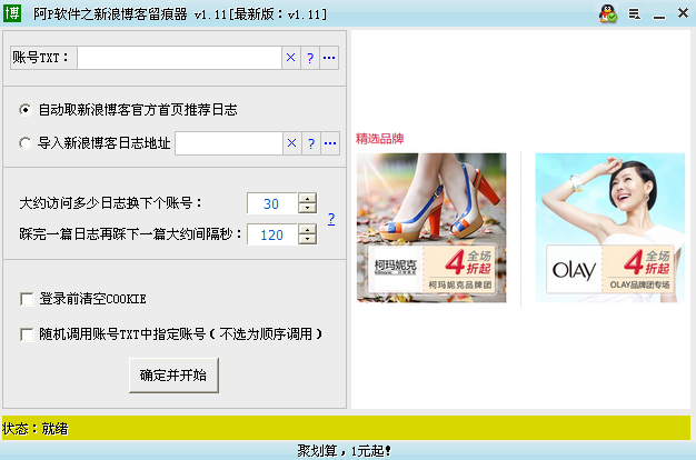 阿P软件之新浪博客留痕器可以自动在他人的新浪博客上留下你到访记录,运用新浪博客留痕器的好处在于,你可以轻松在他人博客中留下足迹,也可在指定对象留下足迹,留下的脚印越多,他人回访的概率也就越大。