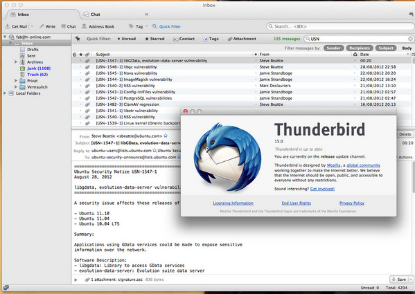 另外,由于完全专注于单独邮件客户端的开发,开发者可以摒弃其他那些不需要的组件,尽最大可能把这个客户端程序做完美。与以前作为Mozilla浏览器的邮件组件的时候相比,现在这款单独客户端程序的界面要整洁许多。