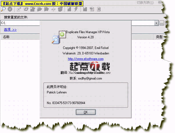 EF Duplicate Files Manager(重复文件查找) V4.40 绿色版 EF Duplicate Files Manager 是一个功能全面的重复文件查找和管理工具,程序可以在指定路径找出所有相同文件名、相同大小、相同内容的文件,支持的文件格式包含ACE, ARC, ARJ, BZIP2, CAB, CPIO, GZIP, IMG, ISO (ISO9660), LHA, RAR, PRM, TAR, TGZ, ZIP, ZOO等几十种常用文件格式!支持多国语言程序界面,包括对繁体中文的支持!
