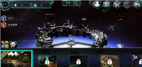 空间站被划分为 20 个关卡,每个关卡的场景都不同,而且还蛮有科幻味道,只是场景设计看上去都大同小异,并没有给人留下深刻印象的地方。关卡地图基本一条道走到底,偶尔有一两个分岔也会在小地图上显示清楚,玩家只需要一路冲就行了。本作通过虚拟摇杆控制角色移动,右侧的武器按键就是开枪射击,攻击方式设定为自动瞄准,很方便,省了手指点来点去或者陀螺仪转来转去。此外还有几个角色不同的技能以及主辅助技能可用,攻击流畅,方式也还算多样,过程比较无脑。当然了,这看似无脑的操作并不代表闯关过程也是简单无比,善于利用自身的防御或辅助特技,方能在那些攻速、移速奇快的怪物围攻下存活,而通过打败怪物来获得金币购买武器装备以及回复道具,也是提高生存能力的途径之一。