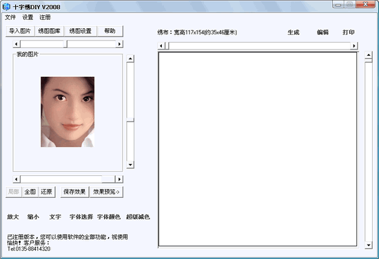 十字绣DIY 2008 简体中文绿色特别版 1.将你的照片做成十字绣图!只要十种颜色就能获得逼真效果,narosoft最新专业绣图设计软件。