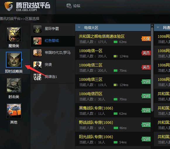 4、各个游戏房间,分为 电信1006,,,网通1006,,,根据你的网络和你下载的游戏版本进入相对应区