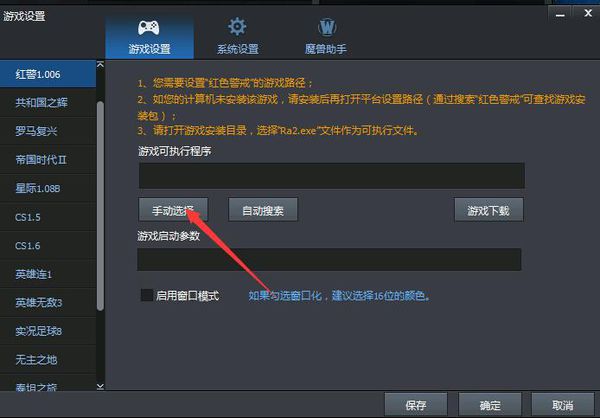 6、选择手动选择,找到之前下载的红色警戒