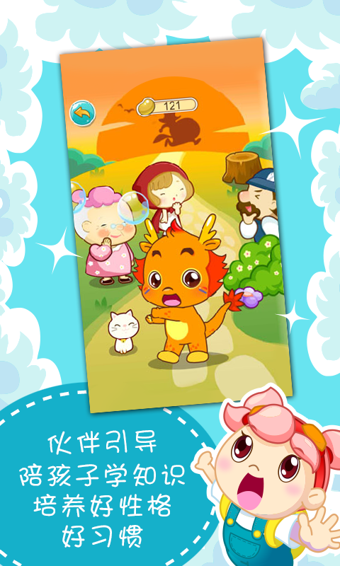 从《伊索寓言》、《中国经典故事》、《格林童话》等儿童文学经典中精选出来专门给宝宝听的启蒙故事,融入了有趣的语音互动,形成一边喊、一边学的互动故事,包括:龟兔赛跑、三只小猪、小红帽、三只小猪、白雪公主、青蛙王子等。。。