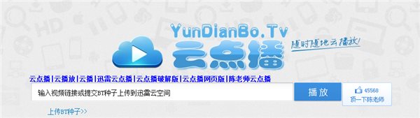 2:陈老师云点播支持ed2k、magnet、thunder链接,http、ftp链接,BT种子40位Hash值,xlpan地址(xlpan://),同时,您更可以直接上传BT的torrent种子,我们将直接为您播放种子内的视频资源3:目前云点播提供3个通道(电信、联通、普通)(一)电信通道可以快进(未缓冲过的地方可随意拖动不会出错),适合电信网络的用户观看(默认选择此通道)(二)联通通道可以快进,适合联通网络的用户观看(三)普通通道不可以快进,适合所有用户观看由于迅雷官方对播放器设置了防盗链,电信、联通通道使用的是非官方原生播放器,目前是外部调用迅雷娱乐频道的播放器,此播放器无法外挂字幕,无法选择影片的清晰度,优势是可以快进。