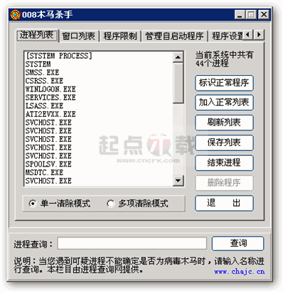 本软件能够终止您系统中的可疑进程,帮助您迅速判断本机的安全状况,大大方便您的工作。你不妨下载试试^_^
