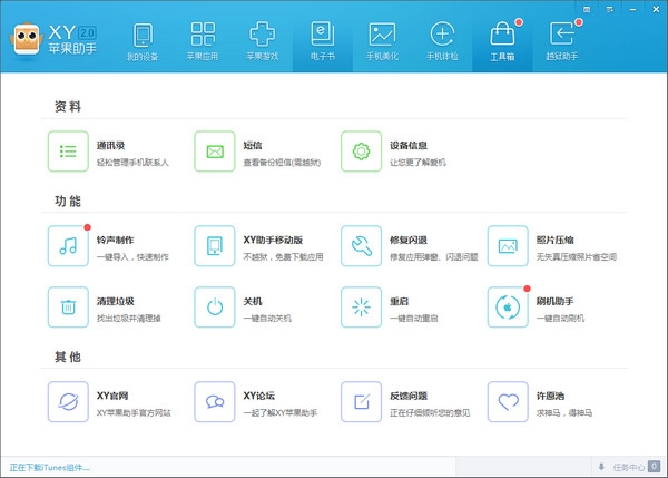 xy苹果助手是XY助手工作室研发的手机应用平台,主要提供手机瘦身、iPhone/iPad游戏和应用下载、最新苹果资讯发布的交互平台。移动互联网正在潜移默化地改变着我们的生活,我们的生活必将变的更加精彩。XY助手将以此作为理念,满足并迎合不断变化的用户需求,为用户和合作伙伴创造更多价值,以最专业的态度去打造更优质的手机应用平台,为提升用户的移动互联网体验而努力。【软件特色】