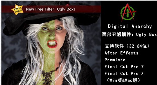 这款AE面部丑陋插件 Ugly Box 是在万圣节的时候 Digital Anarchy 公司推出的一款免费插件,在万圣节使用的插件,当然要变得越丑越好啦!