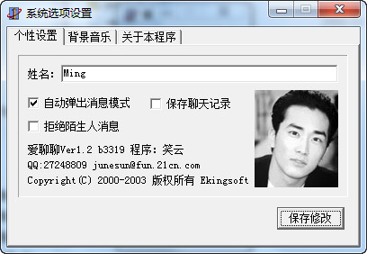 就是您现在使用的这个版本,经过测试修正,主界面和消息界面趋向于大家习惯的QQ模式,希望更能顺手,作者极力推荐使用本软件聊天时记得别忘记它还有听音乐的功能~,还有修改消息窗口文字和背景色的功能,都可以自己定义,感觉一下DIY~