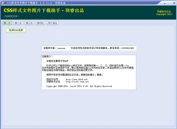 1.打开从网上下载保存的Css样式文件,按照程序第一、二、三、四步进行处理,Css文件中的图片会被保存下来,默认保存路径是Css文件所在目录,并自动修改Css文件中原图片路径地址为相对地址,修改前会自动备份原文件。