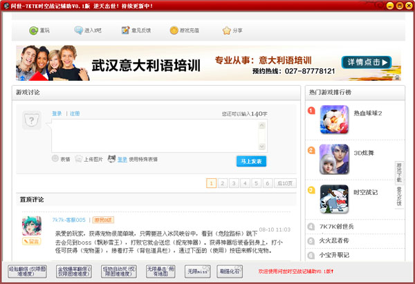 问世时空战记辅助多功能版终于发布了发布了,问世时空战记辅助页面简洁,功能强大,包括无限MISS、修改无限暴击、怪物自动死、经验翻倍等逆天功能,目前仅支持7k7k平台,欢迎下载体验。