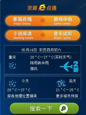 灵犀e点通集合了 便捷网址导航、音乐在线试听、影视在线播放、在线小说阅读、新闻资讯、在线游戏中心、即时天气预报、打折机票酒店等一键式便捷网络生活服务。